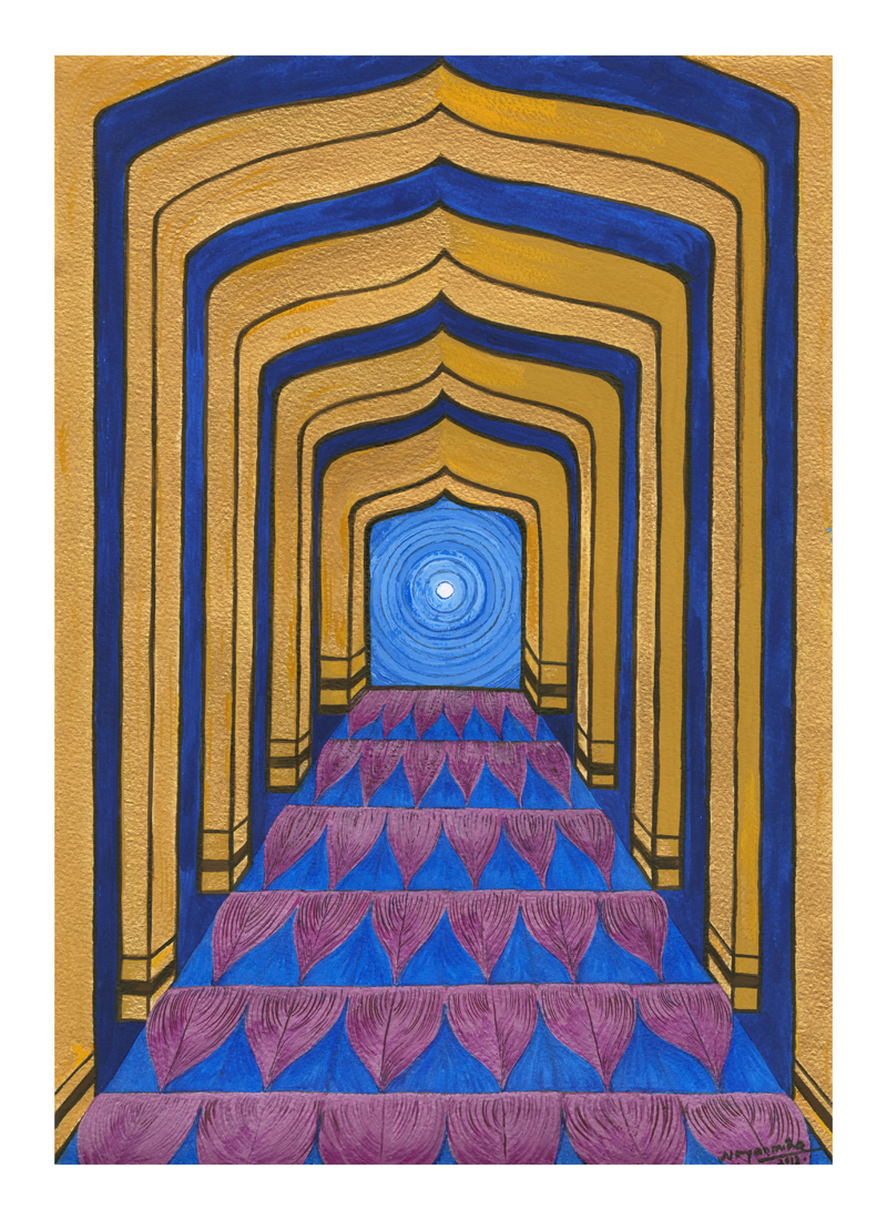 Our journey of life has the goal of going towards God, howsoever you define it – Christ, Allah, Buddha, Ganesh, Hanuman etc. I have represented the heaven in the form of Bindu or the universal truth. To reach this heaven, you have build a solid character symbolized by the lotus petals, which have been painted with silver colour. Silver colour represents your mind. Make your mind pure like a lotus. The gold colour represents your soul. When you have pure mind and unite it with your soul, you can march towards your heaven.