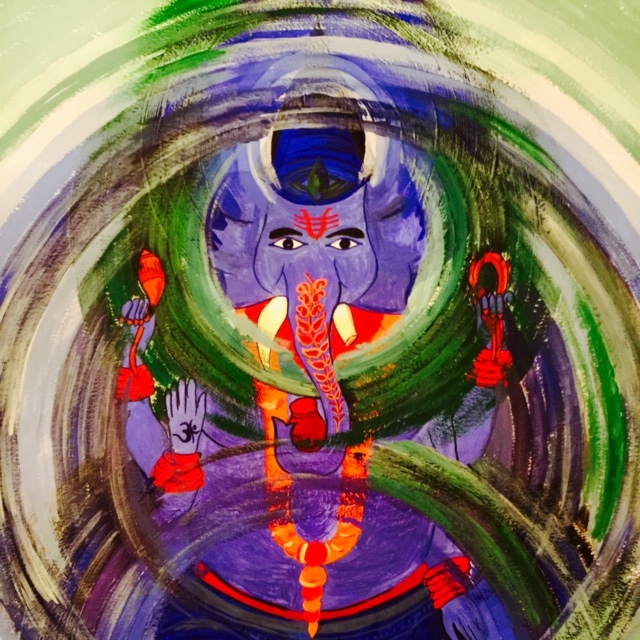 In Iconography, there is a meaning for every symbol within a Ganesh painting – the hands, the eyes, the stomach etc. And every part of Sri Ganeshji is emanating positive auras! In this work, I have tried to depict the multitude of auras coming from Sri Ganeshji!
